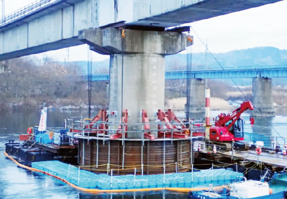 - 信越本線来迎寺前川間信濃川橋りょう橋脚耐震補強その2(4P・5P)